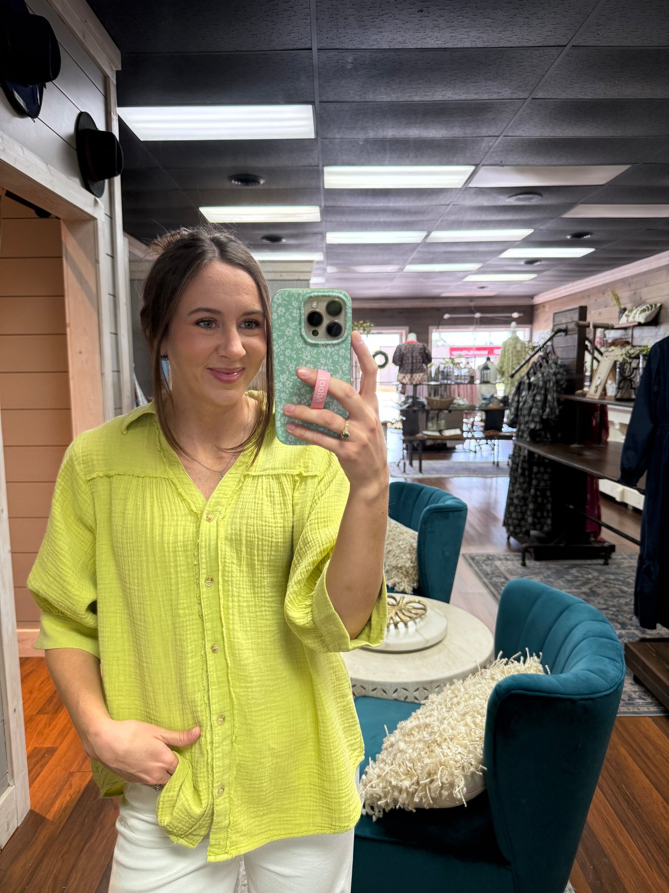 Chartreuse Cotton Gauze Top