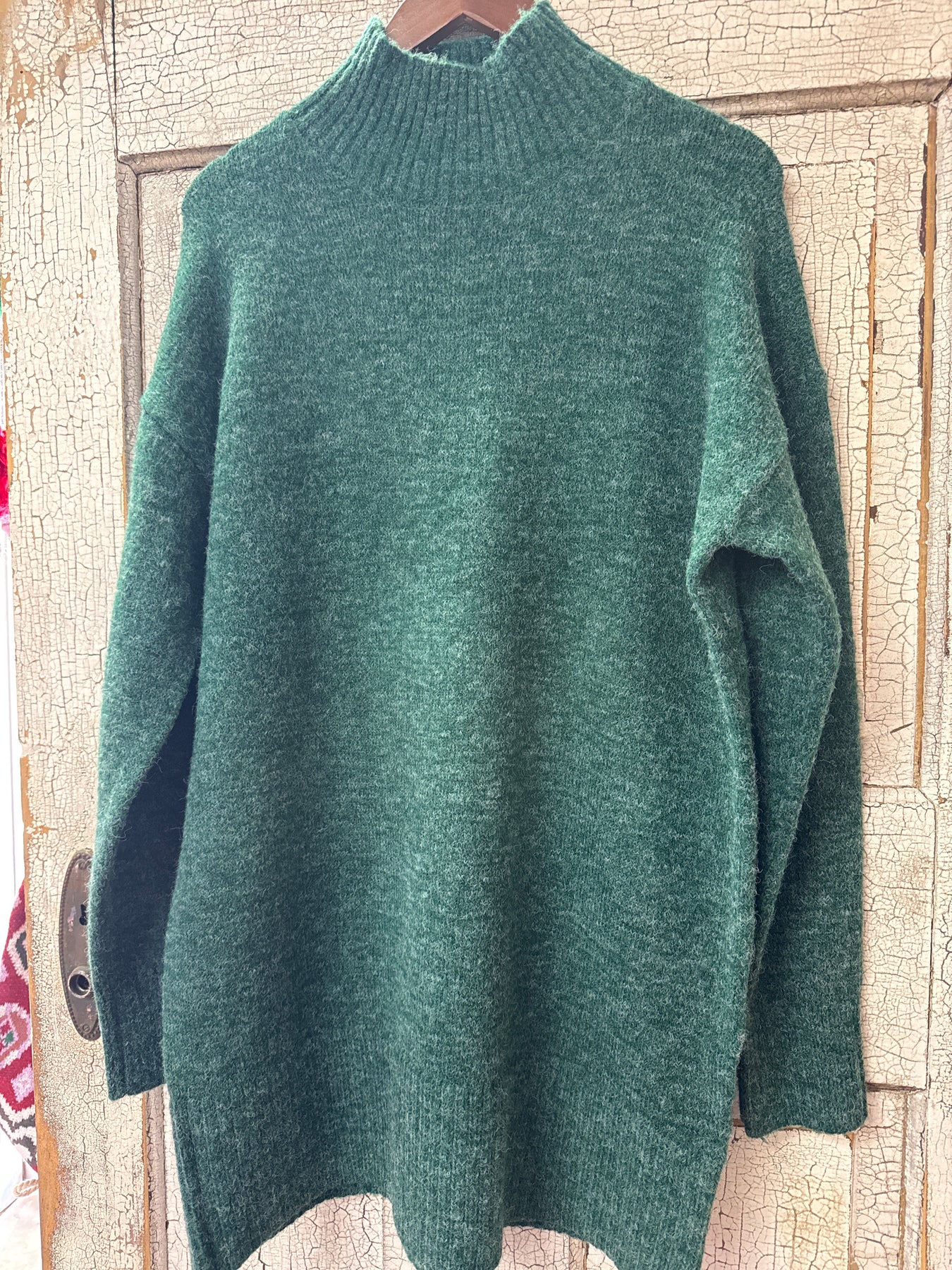 A quintessential winter essential, this high neck sweater dress offers a relaxed silhouette, perfect for enhancing comfort while staying stylish. The ribbed detail at the hem and cuffs highlight its texture, ensuring a snug and cozy fit. It's superb for versatile styling?pair it with knee-high boots for extra warmth and a chic ensemble. Throw on a patterned scarf and a leather tote for a day out or a casual evening. 64% Acrylic 25% Polyester 8% Nylon 3% Spandex